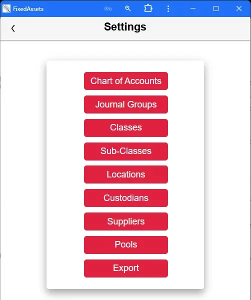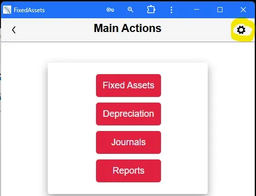 The main menu appears in the body of the screen and the settings is the gear icon on the right hand side.