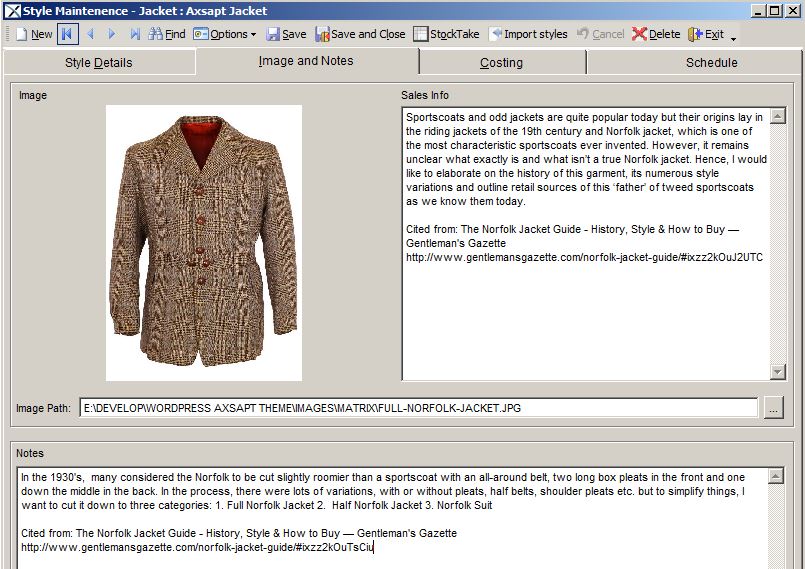 Reports are also formatted in this way so you can see at a glance Sales and Stock results by Styles with associated Colours and Sizes.